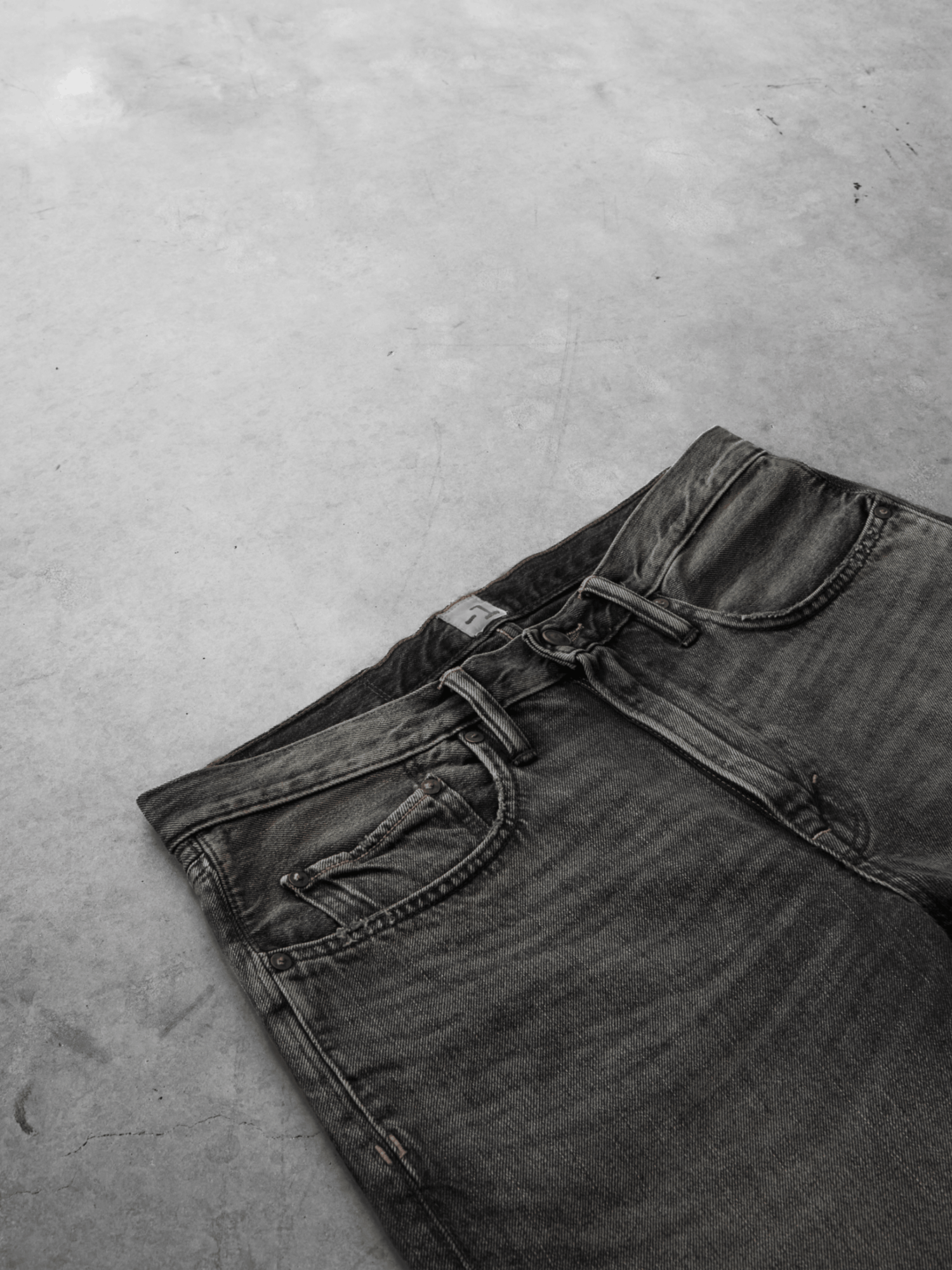 עשוי דנים כותנה רכה בגוון שחור־אפור עם מראה חלק וללא שטיפה מודגשת, ליצירת לוק נקי ויומיומי.