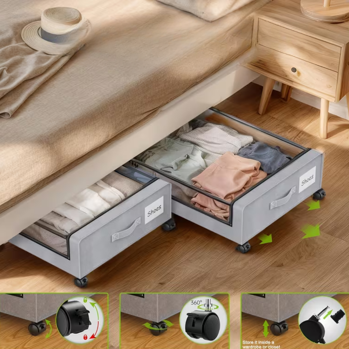 קופסאות האחסון מאפשרות לכם לארגן את הבית בקלות על-ידי ניצול חכם של השטח שמתחת למיטה.