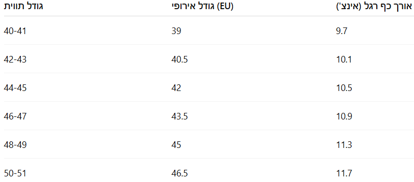 מתאים לשני המינים במידות מגוונות