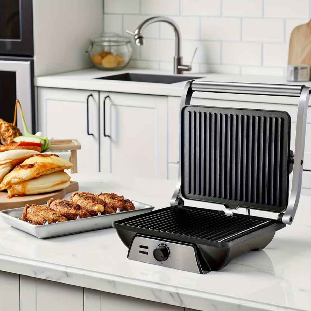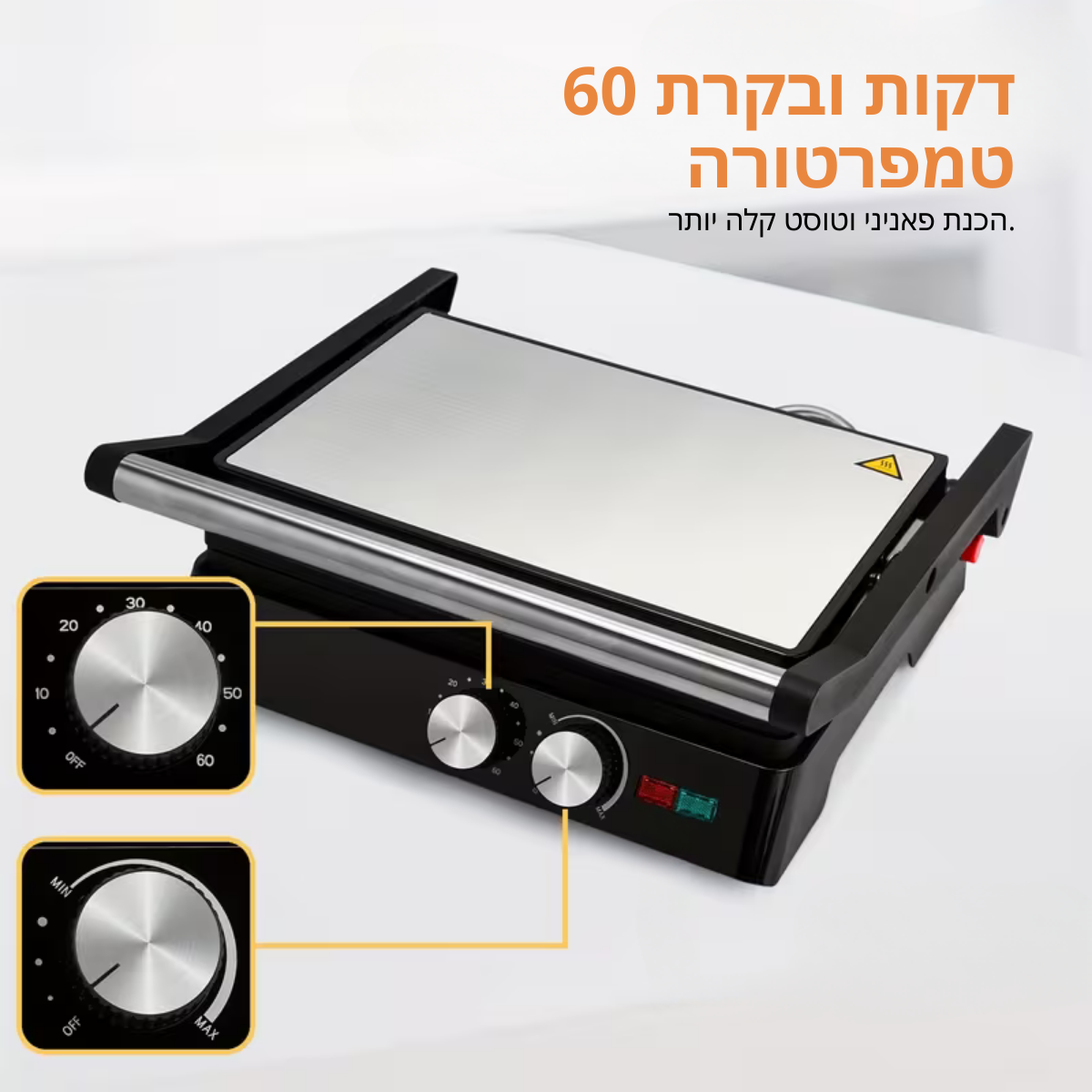 🔋 רב-תכליתיות 3 ב-1: גריל, מכבש פאניני ומכונת וופלים - מכשיר אחד לכל התשוקות שלכם.